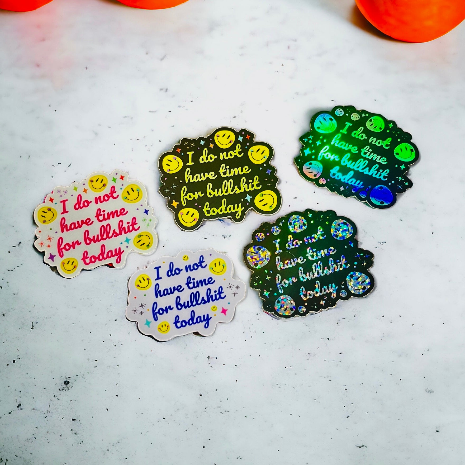 No time for BS? Stick this sticker everywhere! A playful and quirky reminder to stay focused and cut out the nonsense. Perfect for laptops, water bottles, and more. No more beating around the bush - show the world you mean business with this fun sticker!